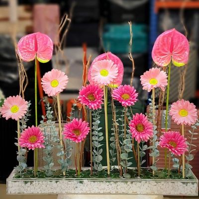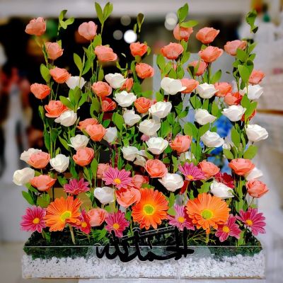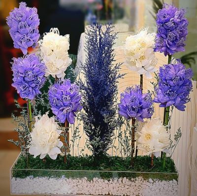 Artificial flower are human-made objects that mimic the appearance of real trees and are often used for decoration.